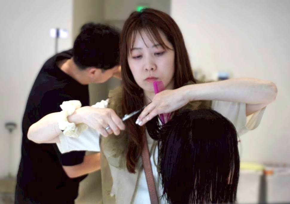 実習では、20分という制限時間の中でベースカットに挑戦。ほぼチョップカットなしで、フォルム作りの本質を意識します。