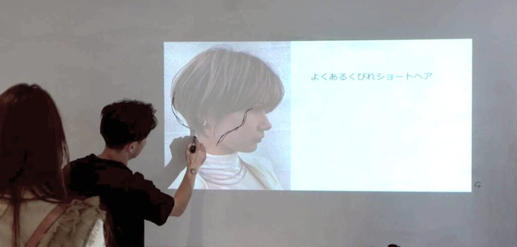 「よくあるくびれショート」を題材に、画像を重ねたり消したりしながらフォルムを見極める実践的なトレーニングも行いました。
